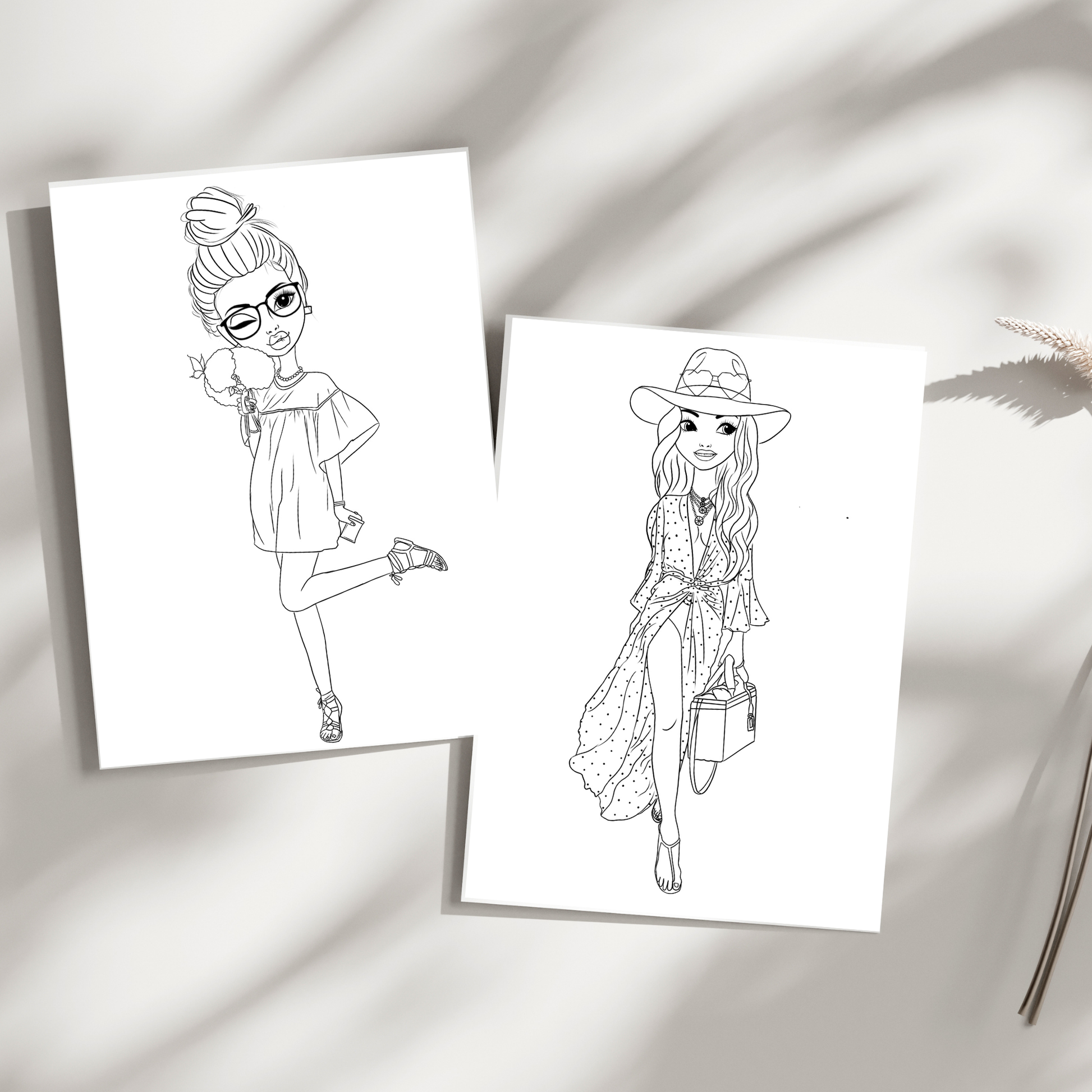 Girlish Fashion Digital Coloring Book (42 Pages)